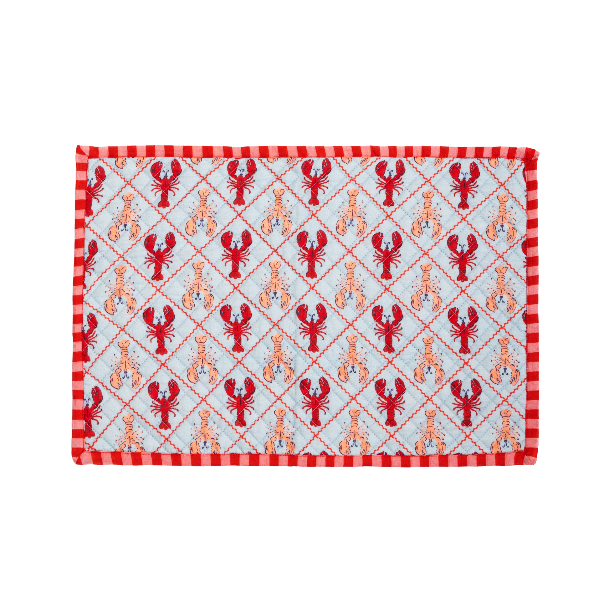 Make a splash at the table with the Maine Squeeze Quilted Placemat — coastal chic with a playful twist. Featuring a sea of lobsters across a soft quilted surface, it’s framed with bold stripes that feel straight out of a seaside picnic. Equal parts cheeky and charming, this placemat brings a hit of summer energy to seafood feasts, sunset dinners, and every table that deserves a little seaside story.